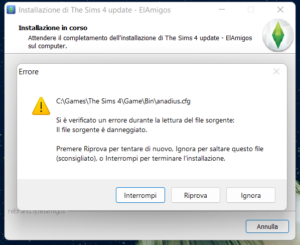L’installazione di the sims 4 è corretta e il gioco mi parte, il problema è l’installazione di questo aggiornamento, ho eseguito tutto come amministratore e ho anche provato a selezionare il file The Sims 4 update 1.89.214 – 1.90.358-1.bin ma non va lo stesso