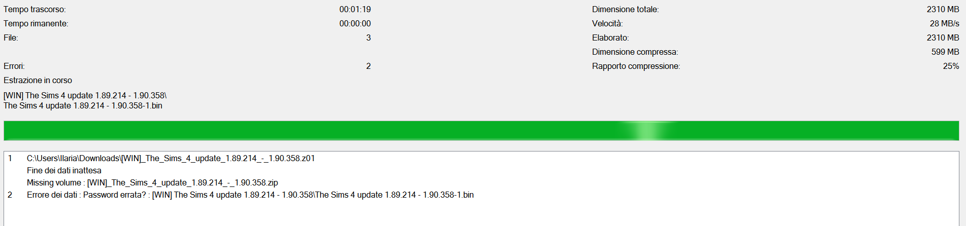 prova a riestrarre l’archivio, forse si è danneggiato nel mentre