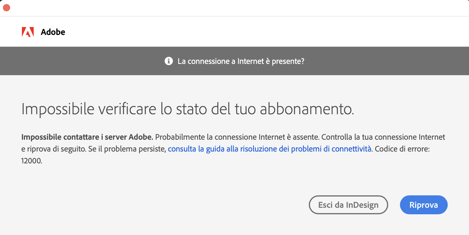 Ciao, ho installato e fatto tutto come da procedura, ma quando apro l’app di Indesign mi rimanda l’errore nella foto allegata. Poco prima ho installato anche Illustrator e funziona senza problemi.