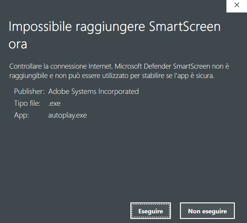 Ogni volta che clicco “esegui come amministratore” sull’icona autoplay mi appare questa finestra.