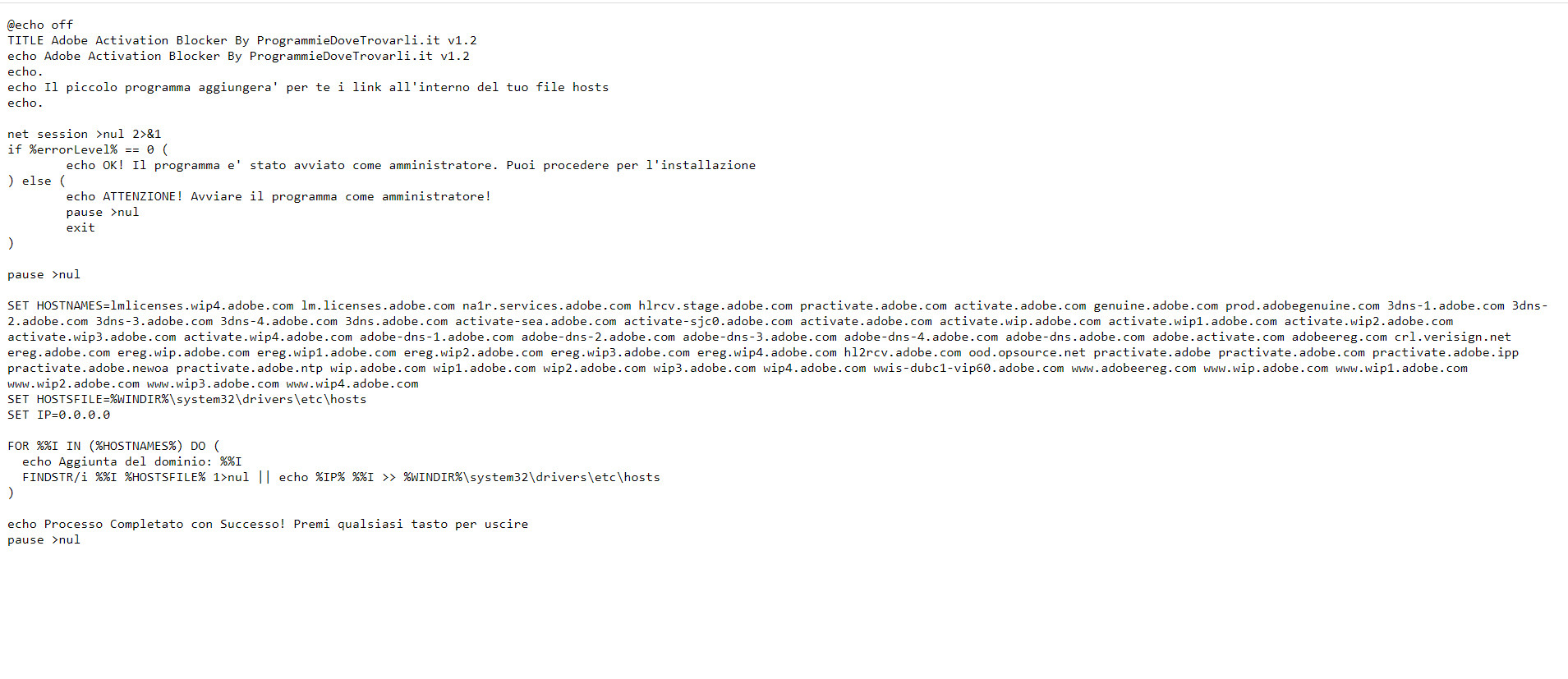 Per aiutarvi nel blocco degli aggiornamenti automatici potete scaricare questo file da QUI e salvarlo come nome_file_che_volete.bat sul desktop ed avviarlo come amministratore, sarà lui ad installare correttamente tutti i link all’interno del vostro file hosts.