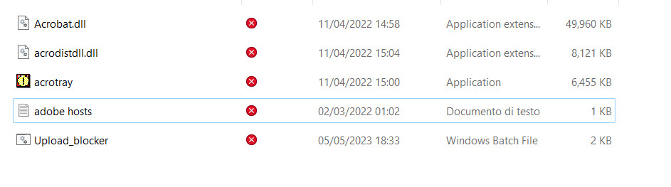 - Ultimo aggiornamento: Acrobat riesce comunque a cancellare il file vuoto e ricrearlo, quindi riattivare il servizio.