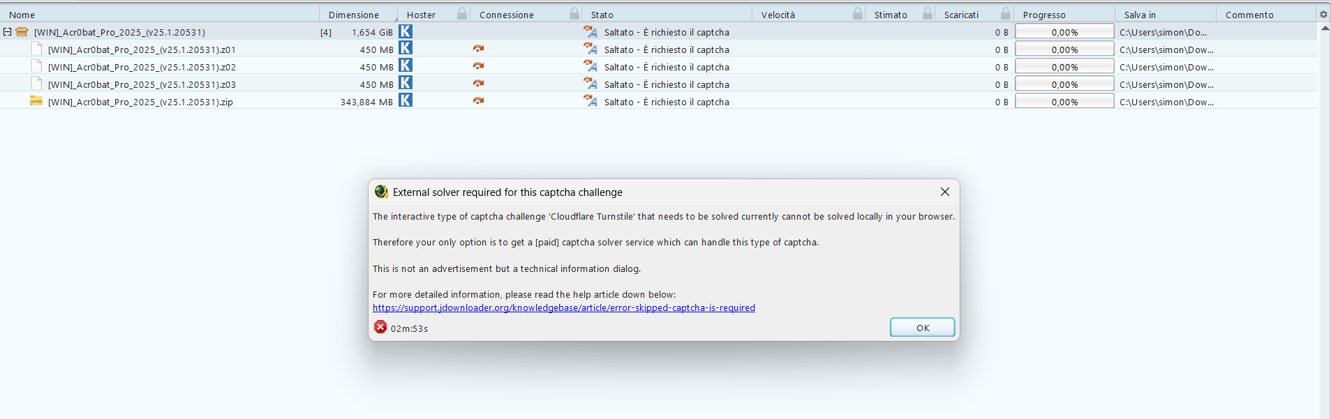 Ciao, grazie per la risposta. il problema è che copio i 3 mirror su Jdownloader. mi compare questo: