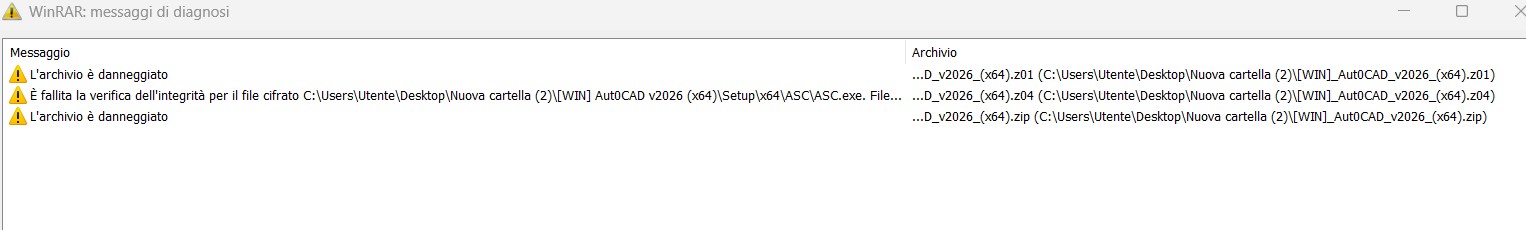 mi dice che il file [WIN]_Aut0CAD_v2026_(x64).zip, non è un archivio