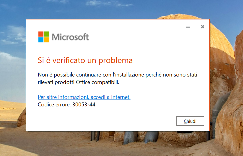 Ho fatto come mi hai suggerito. L’ho fatto almeno 5 volte di seguito, ma il messaggio purtroppo p sempre lo stesso: Errore, impossibile trovare elementi office compatibili. 🙁 Devo provare ancora?