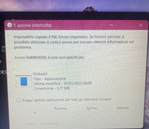 l’antivirus l’ho disattivato. mi dice Impossibile copiare i file. errore imprevisto. errore non specificato. azione interrotta